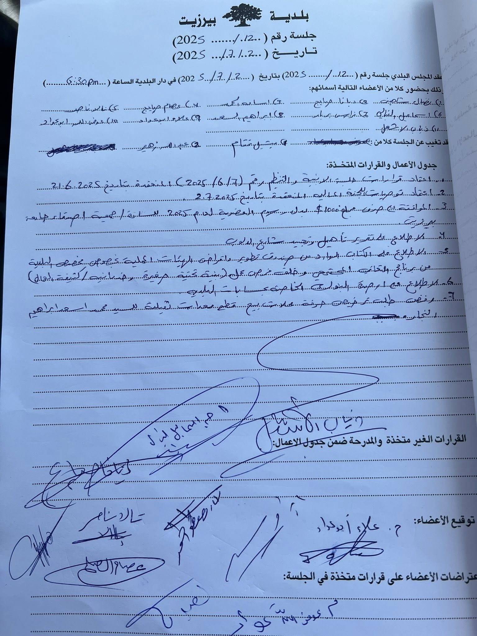 جلسة المجلس البلدي 12/7/2025 بتاريخ 2/7/2025